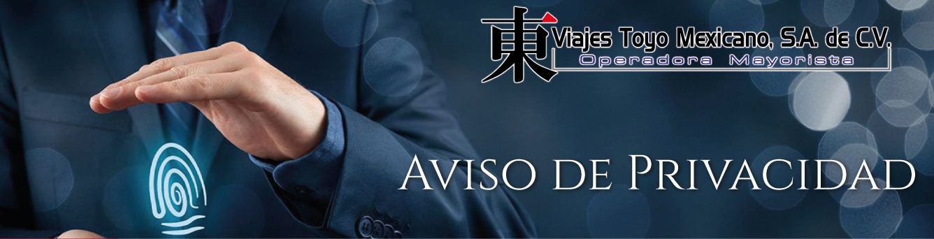 El presente aviso de privacidad (aviso) se emite en cumplimiento por lo dispuesto por el artículo 15 de la Ley Federal de Protección de Datos Personales en Posesión de los Particulares publicada el 5 de julio de 2010 en el Diario Oficial de la Federación, y se pone a disposición de los usuarios que entreguen datos o información personal a Viajes Toyo Mexicano, S.A de C.V (Viajes Toyo) En nuestro carácter de responsables en el tratamiento de datos personales observamos los principios que marca la ley, de licitud, consentimiento, información, calidad, finalidad, lealtad, proporcionalidad y responsabilidad.